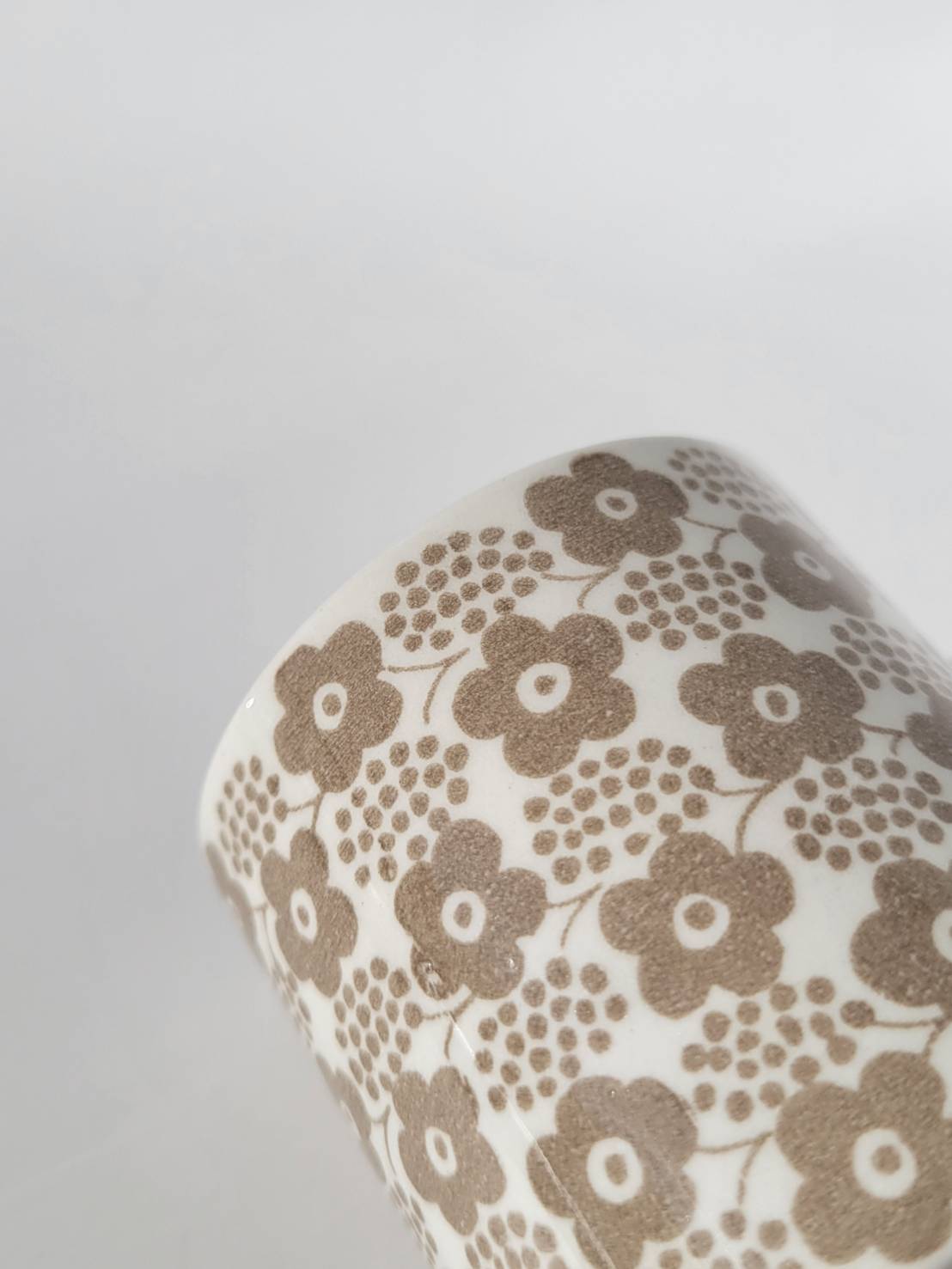 小花とベリーの房がリム部分に落ち着いたベージュカラーで描かれています。