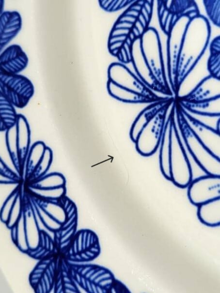 こちらは製造の段階でできてしまう、窯の中での支柱の跡(支柱痕)です。