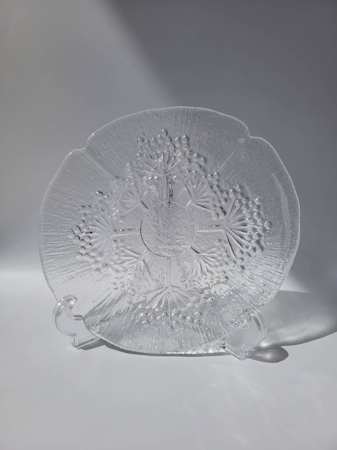 フィンランドの人々にとって馴染みのあるお花が表現された、フィンランドの人々にとって馴染みのあるお花が表現された、美しいガラスプレートです。